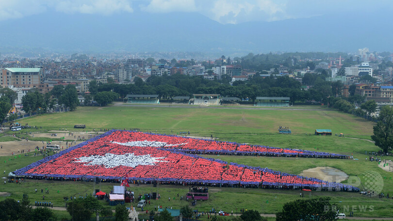 【8月24日 AFP】ネパールの首都カトマンズ(Kathmandu)で23日、3万5000人以上が同市中心部にある広場に集まり、世界最大の「人間国旗」作りに挑戦した。
