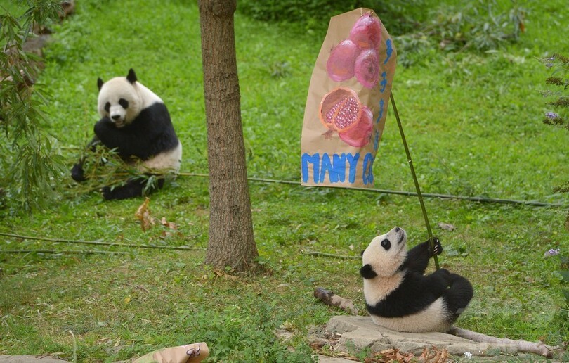 【8月24日 AFP】米ワシントンD.C.(Washington D.C.)のスミソニアン国立動物園(Smithsonian National Zoo)で生まれたメスのジャイアントパンダ「宝宝(バオバオ、Bao Bao)」が先日1歳になり、23日に生後1年目の子どもの将来を占う中国の伝統儀式「抓周」にちなんだ記念行事が行われた。