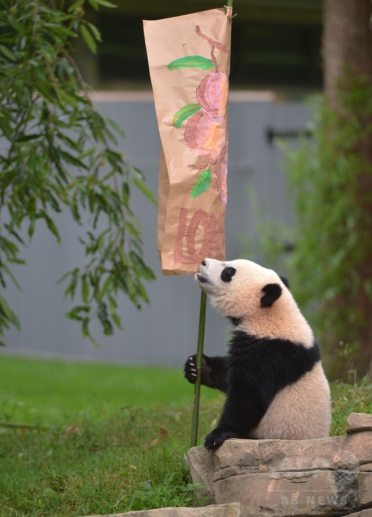 【8月24日 AFP】米ワシントンD.C.(Washington D.C.)のスミソニアン国立動物園(Smithsonian National Zoo)で生まれたメスのジャイアントパンダ「宝宝(バオバオ、Bao Bao)」が先日1歳になり、23日に生後1年目の子どもの将来を占う中国の伝統儀式「抓周」にちなんだ記念行事が行われた。