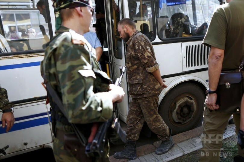 【8月25日 AFP】ウクライナ東部の親ロシア派武装勢力は24日、首都キエフ(Kiev)で政府が独立記念日を祝い実施した軍事パレードに対抗し、捕虜にした政府軍兵士数十人を公衆の面前で強制的に行進させた。
