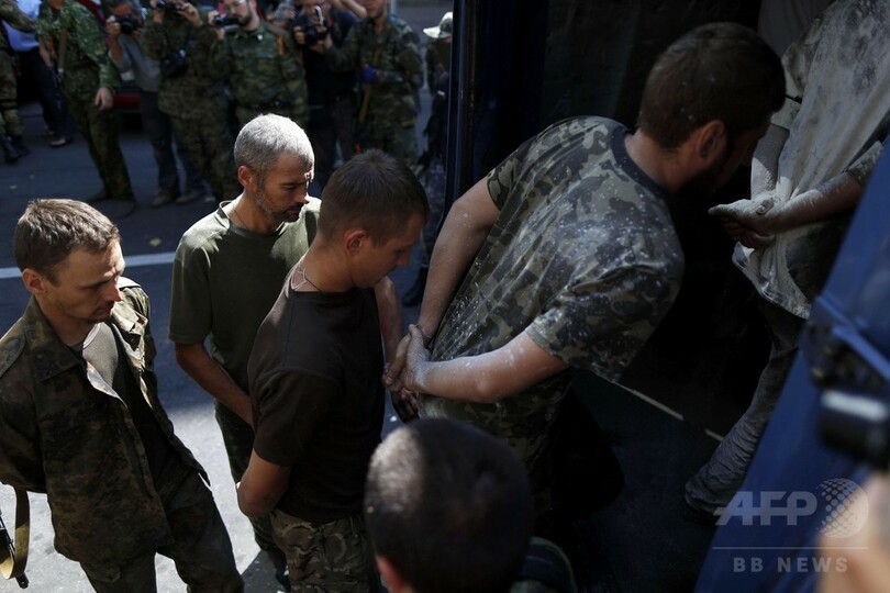 【8月25日 AFP】ウクライナ東部の親ロシア派武装勢力は24日、首都キエフ(Kiev)で政府が独立記念日を祝い実施した軍事パレードに対抗し、捕虜にした政府軍兵士数十人を公衆の面前で強制的に行進させた。