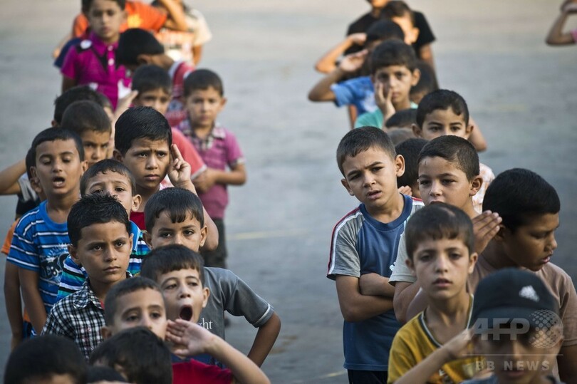 ユニセフおよび国連教育科学文化機関(UNESCO、ユネスコ)、さらに国際NGO「セーブ・ザ・チルドレン(Save the Children)」は共同で声明を発表し、「ガザで暮らすパレスチナ人の子どもたちにとって、今年の夏は、外で遊ぶこともままならず、危険に満ちたものだった。心に傷を負った子どもたちにとって学校というものは、癒やしの役割を担う生命線のような存在だ」と述べている。(c)AFP/Mai Yaghi