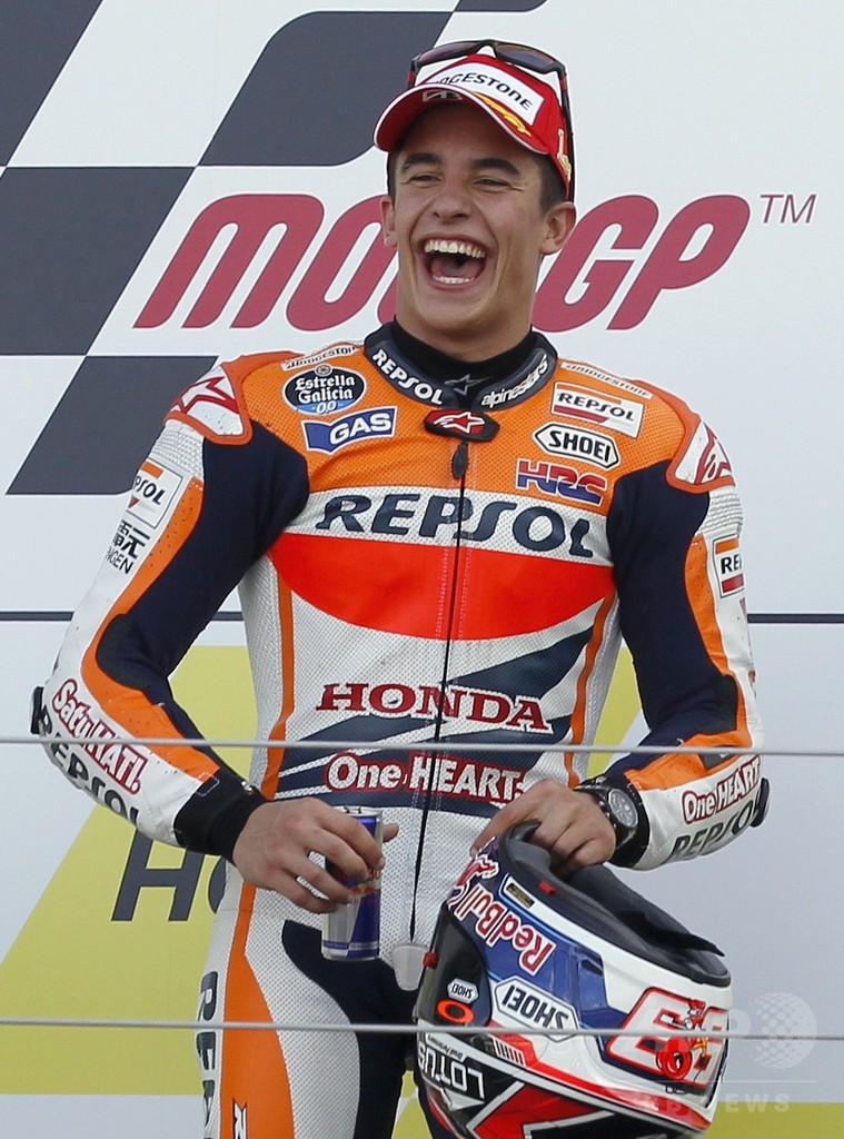 予選で今季10回目のポールポジションを獲得した21歳のマルケスは、年間王者に2度輝いた実績を持つモビスター・ヤマハ(Movistar Yamaha)のホルヘ・ロレンソ(Jorge Lorenzo、スペイン)との勝負を見事に制した。