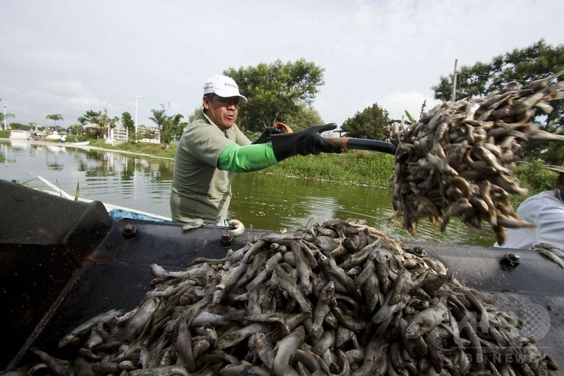 メキシコの潟湖に魚の死骸50トン、今年4度目の大量死