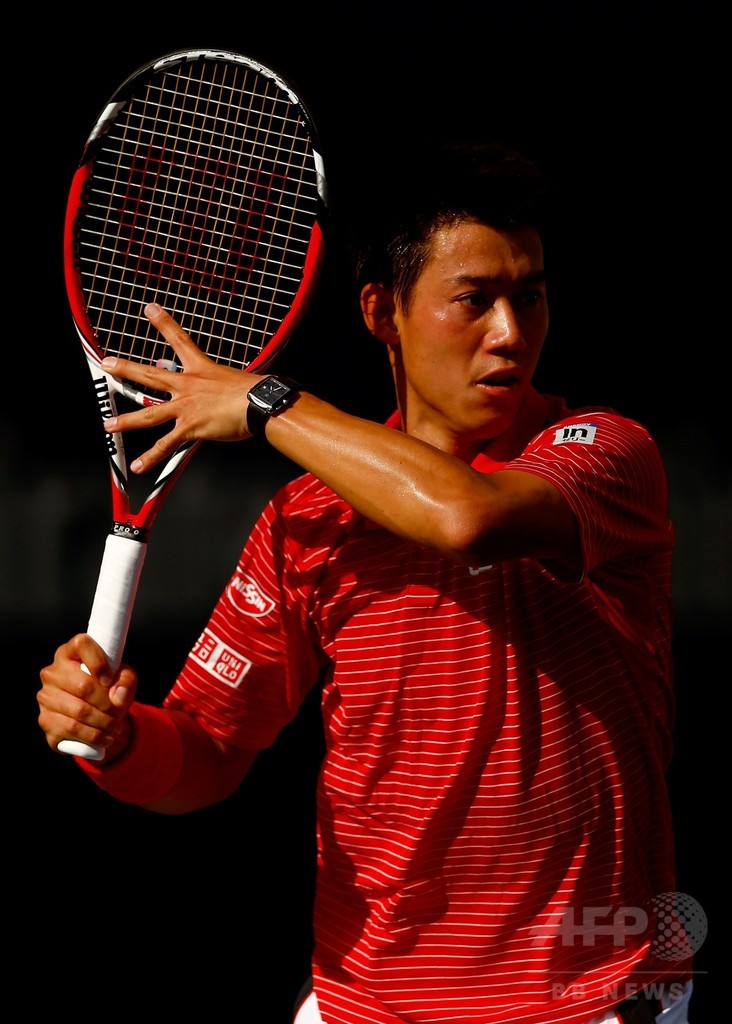 錦織は準決勝で、ノバク・ジョコビッチ(Novak Djokovic、セルビア)とアンディ・マレー(Andy Murray、英国)という優勝経験者の勝者と決勝進出を懸けて対戦する。(c)AFP