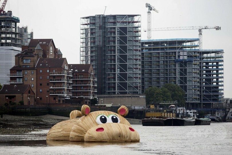 今度はカバ?「巨大アヒル」の芸術家、テムズ川で新作