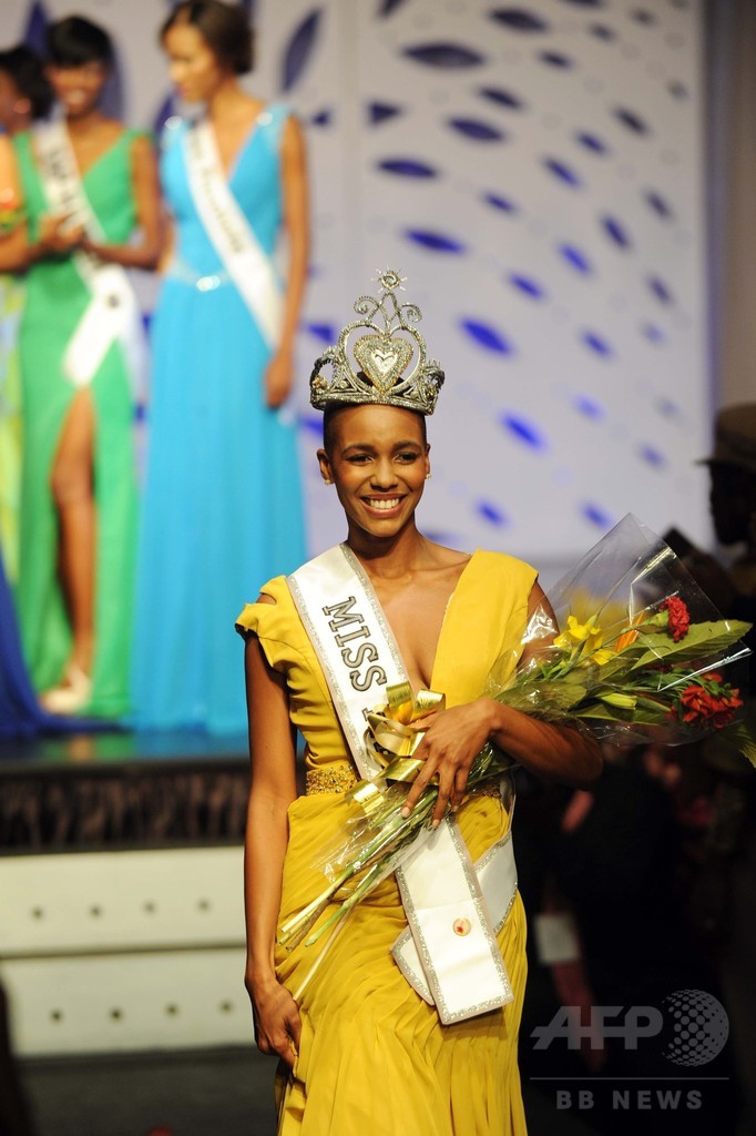 出場した21人の女性の中からミスに選ばれたカロリン・デゼール(Carolyn Desert)さん(25)は、勝者に贈られる王冠を満面の笑みで受け取った。(c)AFP
