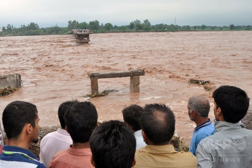 また、隣国パキスタンでも数日間続いた豪雨による被害が出ており、当局によると鉄砲水と家屋崩壊で193人が死亡している。(c)AFP/Parvaiz BUKHARI