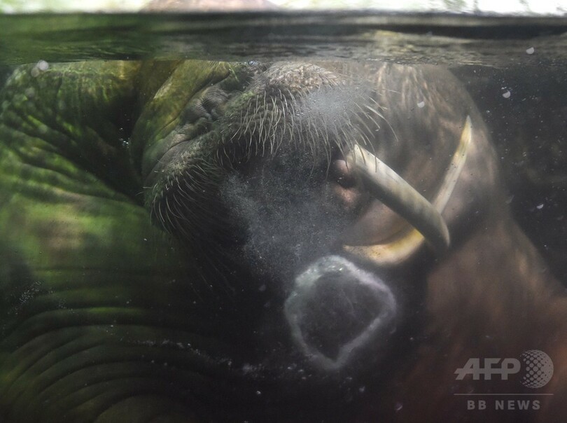 【9月8日 AFP】神奈川県横浜市にある「横浜・八景島シーパラダイス(Yokohama Hakkeijima Sea Paradise)」では今月から11月3日まで、「オータムフェスティバル」の一環として、セイウチの「ピコ」と「セイタ」が世界の名画や彫刻作品を再現したり、水中で泡の輪を作る芸を披露したりする「秋のセイウチ祭」が開催されている。(c)AFP