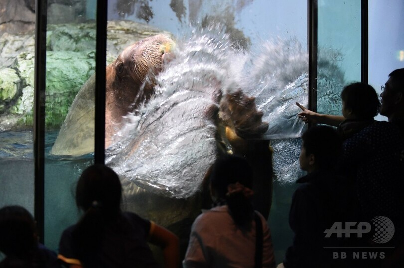 【9月8日 AFP】神奈川県横浜市にある「横浜・八景島シーパラダイス(Yokohama Hakkeijima Sea Paradise)」では今月から11月3日まで、「オータムフェスティバル」の一環として、セイウチの「ピコ」と「セイタ」が世界の名画や彫刻作品を再現したり、水中で泡の輪を作る芸を披露したりする「秋のセイウチ祭」が開催されている。(c)AFP