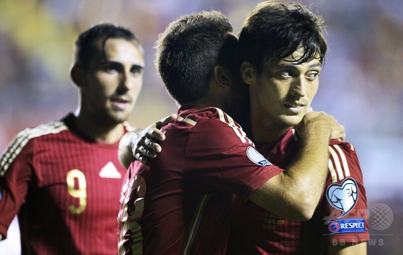 セルヒオ・ラモス(Sergio Ramos)のPKで先制したスペインは、スペイン1部リーグのバレンシア(Valencia CF)に所属するアルカセルのゴールでリードを広げたものの、マケドニアはアギム・イブライミ(Agim Ibraimi)のPKで1点を返した。