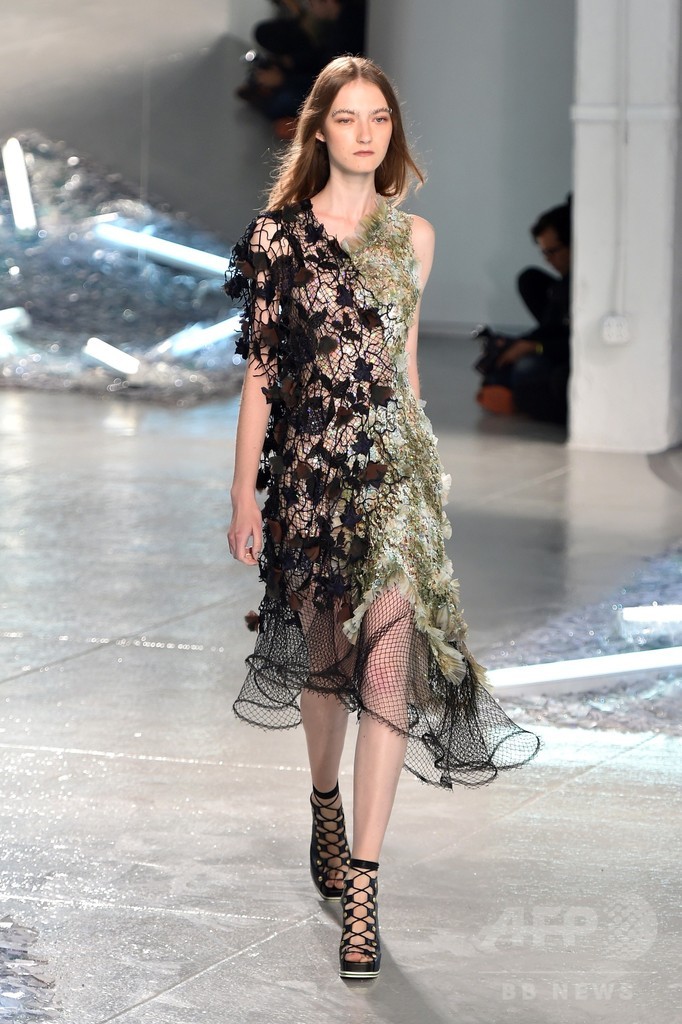 9日には、ケイト・ミュラヴィー(Kate Mulleavy)とローラ・ミュラヴィー(Laura Mulleavy)姉妹が手がける「ロダルテ(Rodarte)」が新作を発表した。(c)AFP/Getty Images