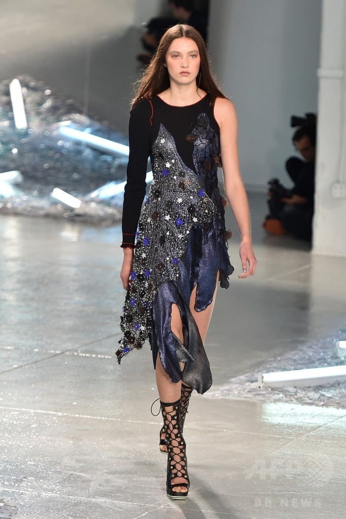 9日には、ケイト・ミュラヴィー(Kate Mulleavy)とローラ・ミュラヴィー(Laura Mulleavy)姉妹が手がける「ロダルテ(Rodarte)」が新作を発表した。(c)AFP/Getty Images
