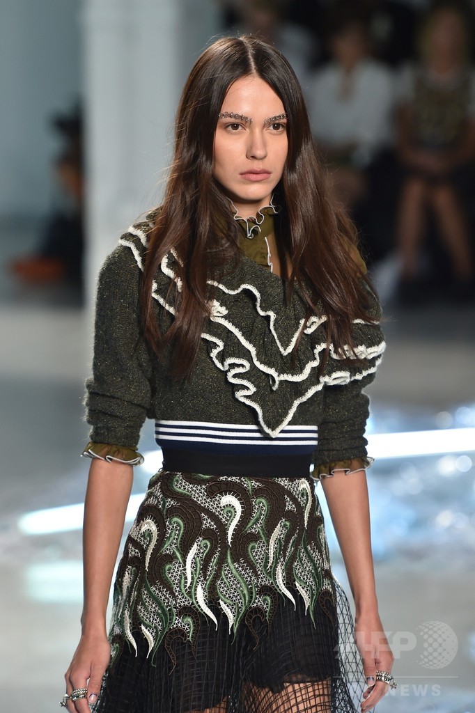 9日には、ケイト・ミュラヴィー(Kate Mulleavy)とローラ・ミュラヴィー(Laura Mulleavy)姉妹が手がける「ロダルテ(Rodarte)」が新作を発表した。(c)AFP/Getty Images