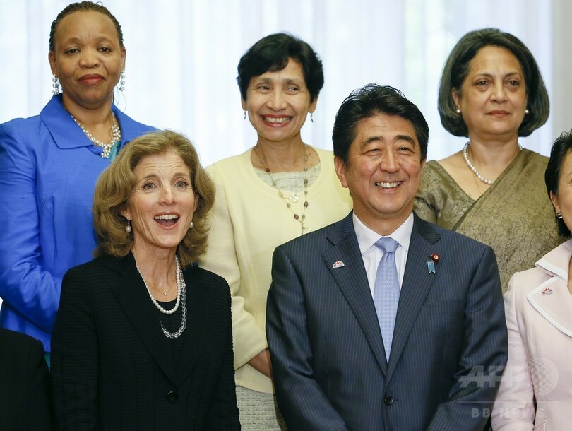 【9月10日 AFP】安倍晋三(Shinzo Abe)首相は10日、キャロライン・ケネディ(Caroline Kennedy)駐日米国大使ら女性の駐日大使を首相公邸に招いて昼食会を開いた。
