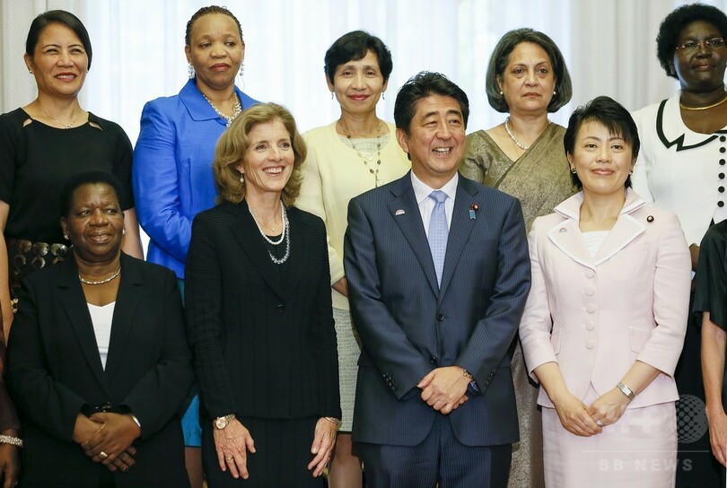 【9月10日 AFP】安倍晋三(Shinzo Abe)首相は10日、キャロライン・ケネディ(Caroline Kennedy)駐日米国大使ら女性の駐日大使を首相公邸に招いて昼食会を開いた。