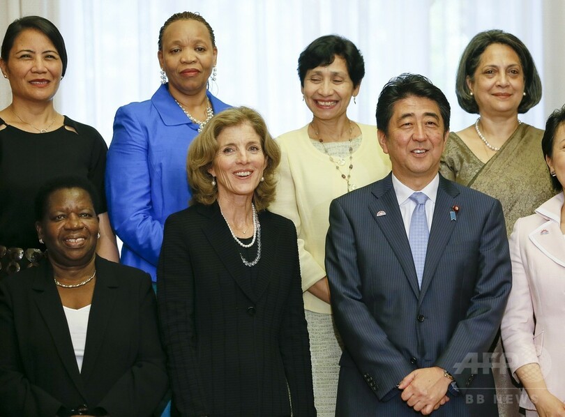 【9月10日 AFP】安倍晋三(Shinzo Abe)首相は10日、キャロライン・ケネディ(Caroline Kennedy)駐日米国大使ら女性の駐日大使を首相公邸に招いて昼食会を開いた。