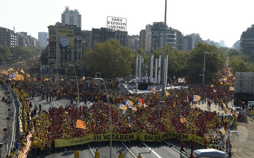 カタルーニャで独立派デモに数十万人、住民投票求め巨大人文字