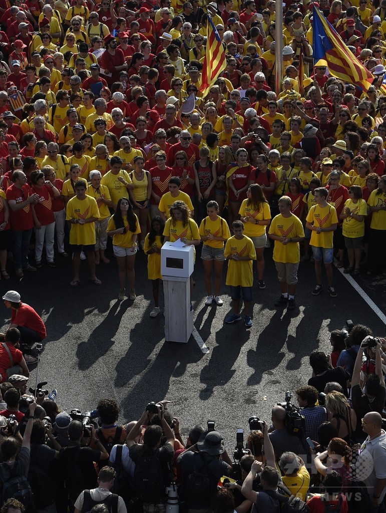 カタルーニャで独立派デモに数十万人、住民投票求め巨大人文字
