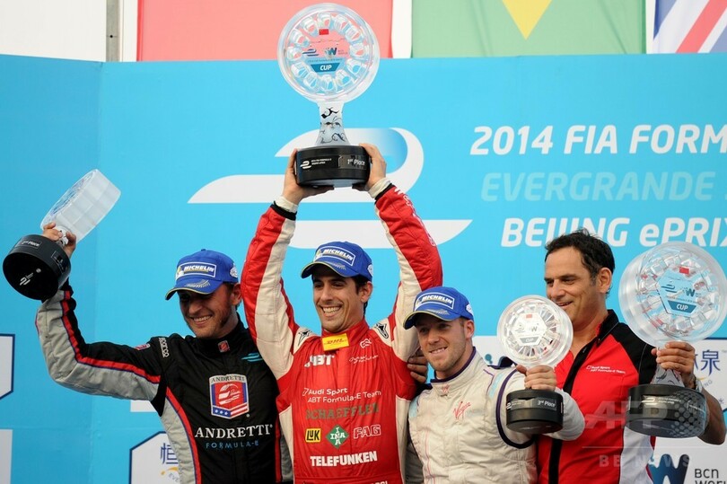 【9月14日 AFP】フォーミュラE(Formula E)世界選手権は13日、中国・北京(Beijing)で開幕戦が行われ、最終周までトップを走っていたeダムス・ルノー(e.dams-Renault Formula E Team)のニコラ・プロスト(Nicolas Prost)が、最終コーナーでヴェンチュリー(Venturi Formula E Team)のニック・ハイドフェルド(Nick Heidfeld)に激しく接触し、フェンスに直撃させた結果、開幕戦の軍配はアウディ・スポーツABT(Audi Sport ABT Formula E Team)のルーカス・ディ・グラッシ(Lucas di Grassi)に上がった。