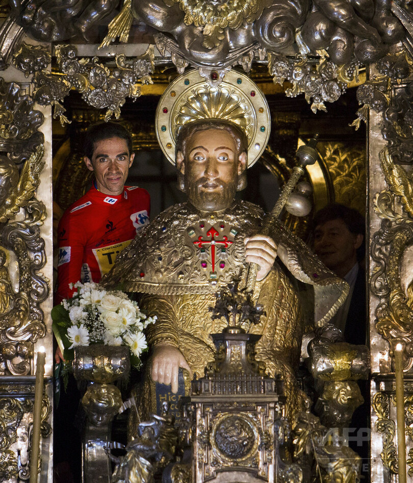 【9月15日 AFP】第69回ブエルタ・ア・エスパーニャ(69th Vuelta a Espana)は14日、最終第21ステージ(サンティアゴからサンティアゴ、9.7キロメートル)の個人タイムトライアルが行われ、チーム・サクソ・ティンコフ(Team Saxo-Tinkoff)のアルベルト・コンタドール(Alberto Contador、スペイン)が通算3度目の総合優勝を果たした。