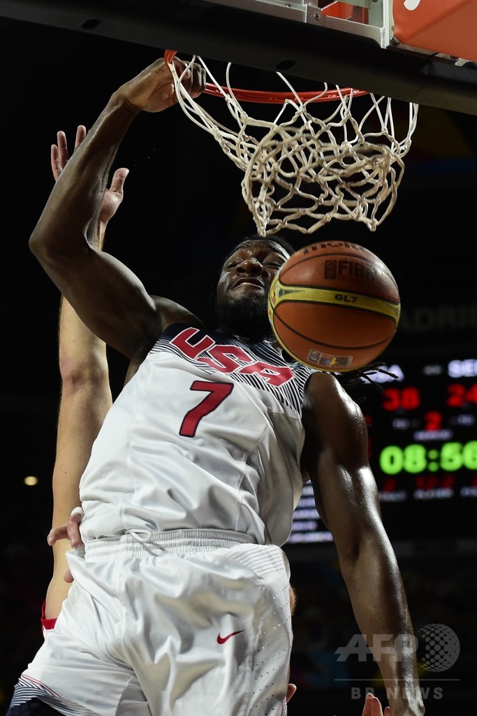 この日放った30本の3ポイントシュートのうち15本を成功させた米国は、カイリー・アービング(Kyrie Irving)とジェームス・ハーデン(James Harden)が、2人合わせて9本の3ポイントを含む49得点を挙げる活躍をみせた。