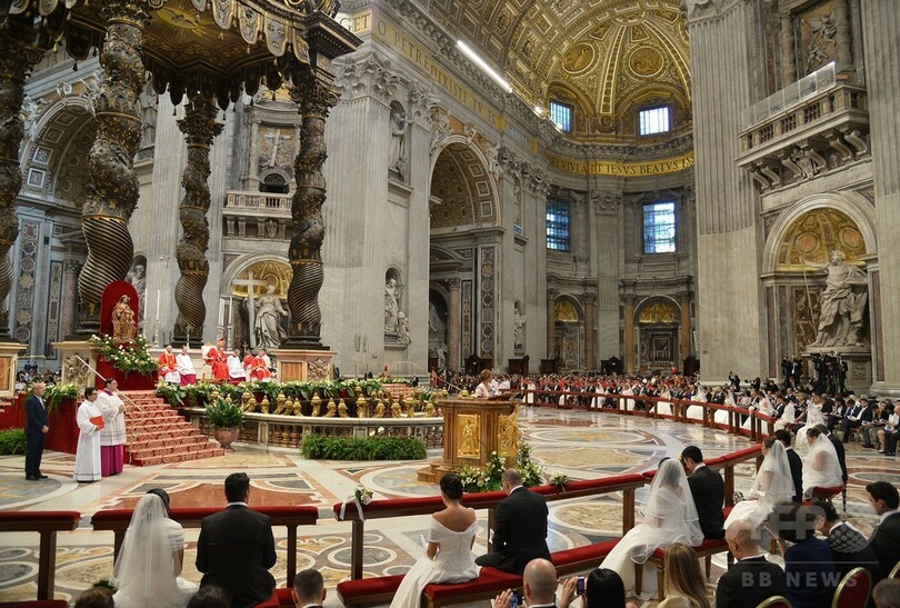 【9月15日 AFP】ローマ・カトリック教会のフランシスコ(Francis)法王は14日、シングルマザーや、既に結婚歴がある人、そして同教会では「罪」とされる婚前の同居生活を送っているカップルなどの結婚式を、バチカンで主宰した。