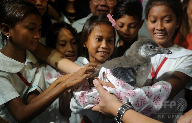 美女に囲まれご満悦? フィリピンの赤ちゃんペンギン