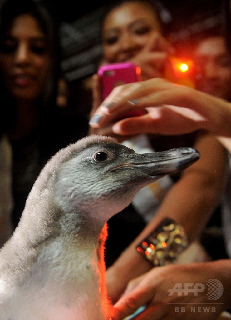 美女に囲まれご満悦? フィリピンの赤ちゃんペンギン