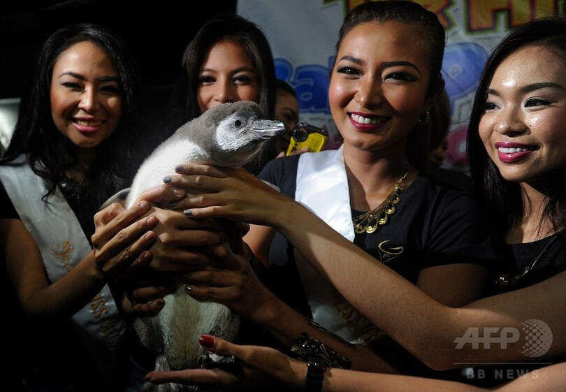 美女に囲まれご満悦? フィリピンの赤ちゃんペンギン