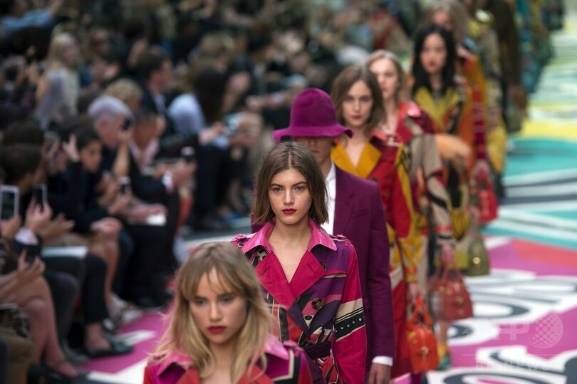 15日にはクリストファー・ベイリー(Christopher Bailey)が手がける「バーバリー プローサム(BURBERRY PRORSUM)」が新作を発表した。(c)AFP