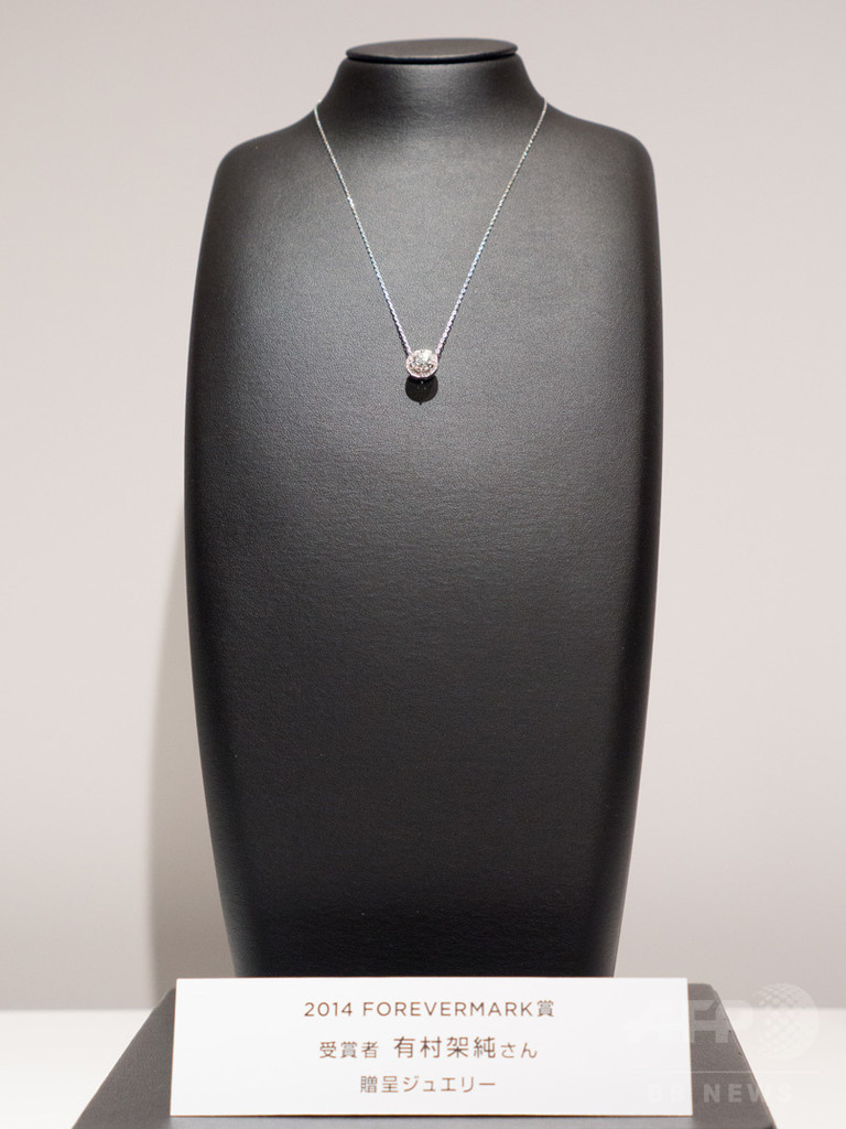 「フォーエバーマーク」賞は、ダイヤモンドのように稀有な才能と究極の美をそなえた女性に贈られる賞。今回有村架純には、ダイヤモンドネックレスの『センター・オブ・マイ・ユニバース』が贈呈された。中心には厳選された1.3カラットのダイヤモンドが煌めき、太陽のように光輝く女性を表現している。