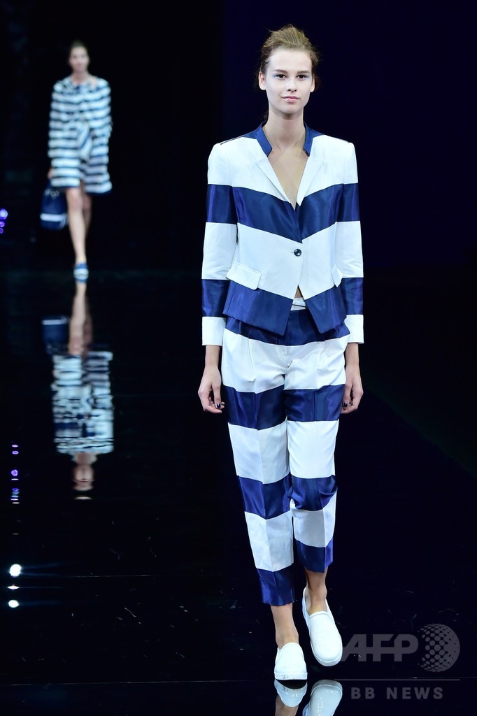 18日には「エンポリオ アルマーニ(Emporio Armani)」が新作を発表した。(c)AFP