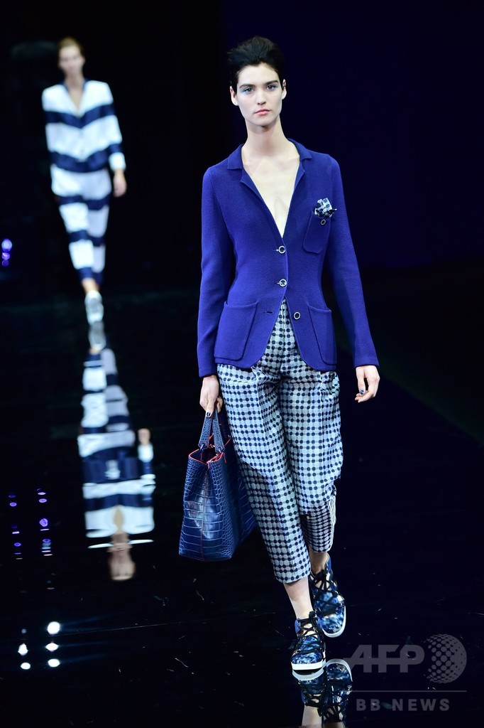 18日には「エンポリオ アルマーニ(Emporio Armani)」が新作を発表した。(c)AFP