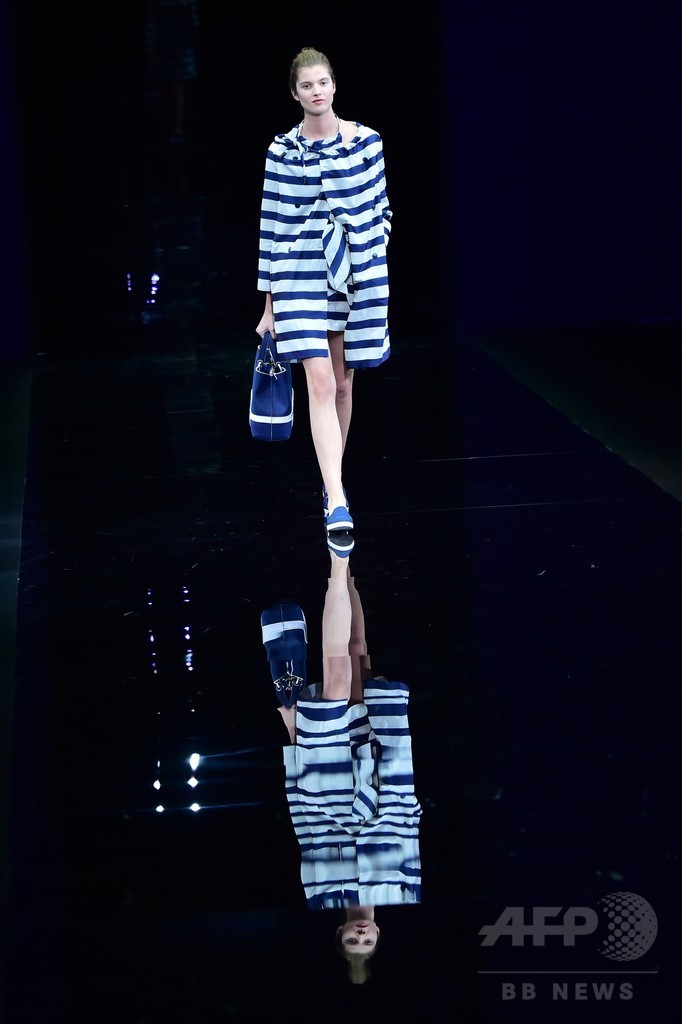 18日には「エンポリオ アルマーニ(Emporio Armani)」が新作を発表した。(c)AFP