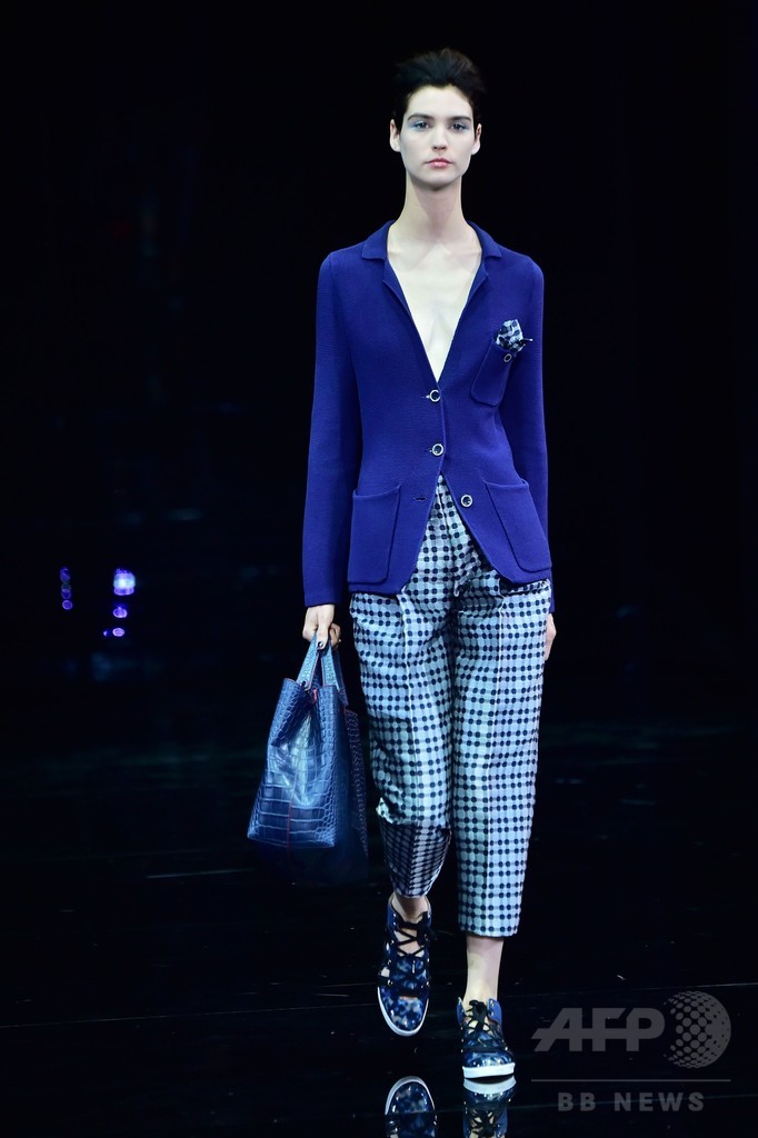18日には「エンポリオ アルマーニ(Emporio Armani)」が新作を発表した。(c)AFP
