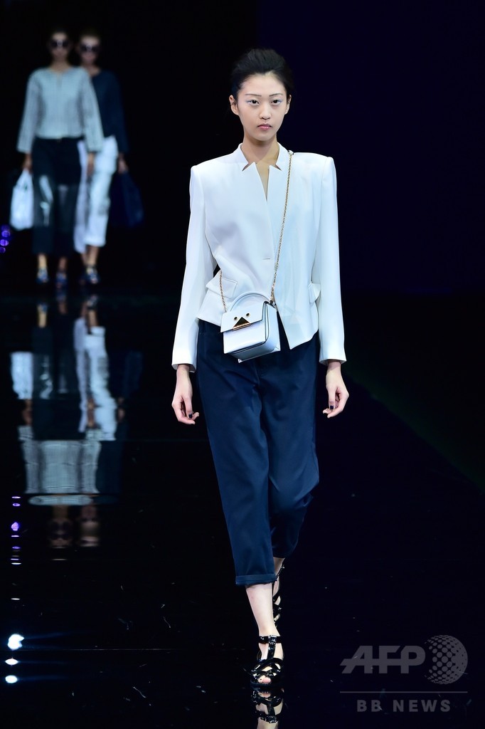 18日には「エンポリオ アルマーニ(Emporio Armani)」が新作を発表した。(c)AFP