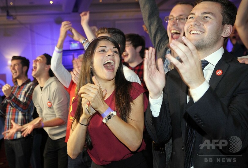 ニュース 政治・経済 スコットランド独立は否決、BBC速報 2014年9月19日 13:33 発信地:エディンバラ/英国 [ ヨーロッパ 英国 ] このニュースをシェア ‹ › ❮ 3/4 ❯ 英北部スコットランド(Scotland)のグラスゴー(Glasgow)で、開票結果に喜ぶ独立反対派の人々(2014年9月19日撮影)。(c)AFP/ANDY BUCHANAN 画像作成中 ! 【9月19日 AFP】18日投開票が行われた英北部スコットランド(Scotland)の独立の是非を問う住民投票は、19日早朝時点の英国放送協会(BBC)の開票速報によると、反対54.3%、賛成45.7%で否決される見込み。(c)AFP 政治・経済 一覧へ> メディア・報道関係・法人の方向け 写真・動画 購入のお問合せ>