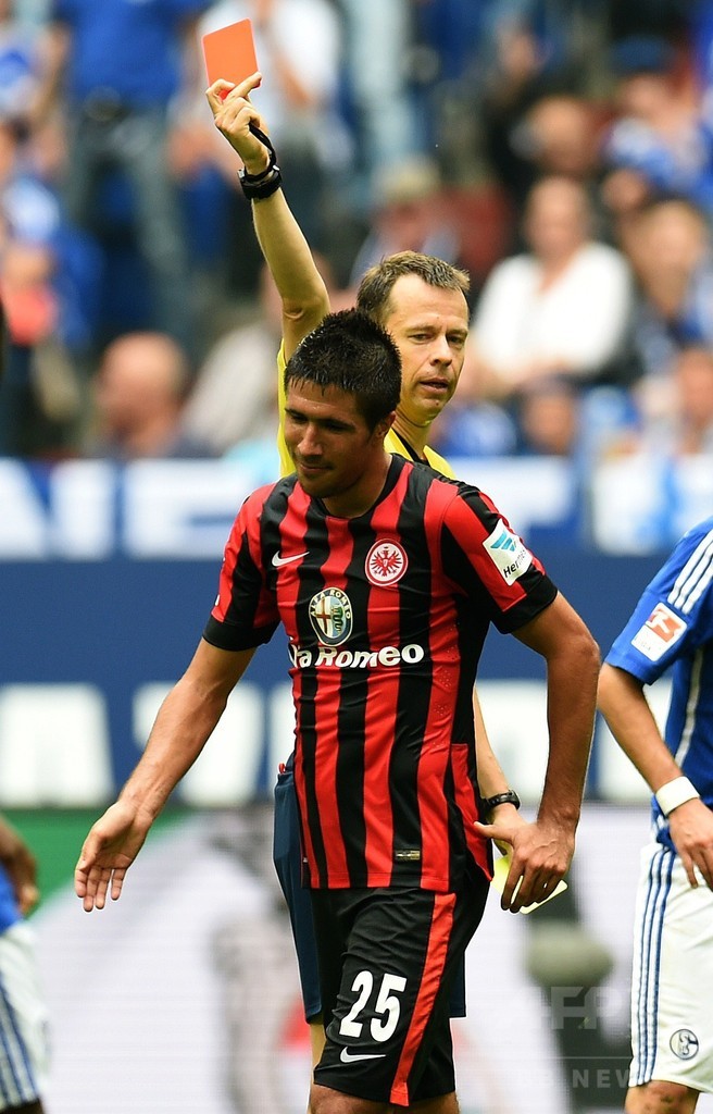 【9月21日 AFP】14-15ドイツ・ブンデスリーガ1部は20日、第4節の試合が行われ、シャルケ04(Schalke04)が退場者2人、フランクフルト(Eintracht Frankfurt)が退場者1人を出した荒れた試合は2-2の引き分けに終わった。