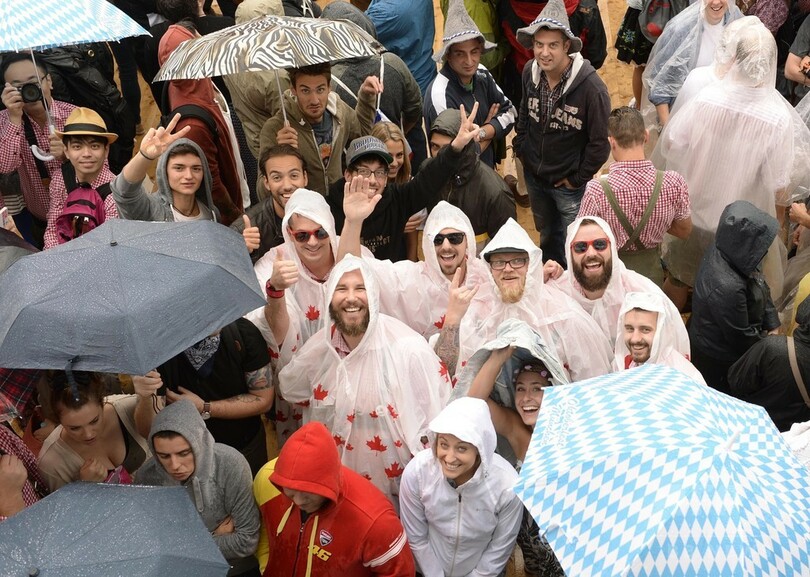 開会前に雨の中、市内でビール醸造家らのパレードを見た人たちは、市内中心部の会場に設置された14の大型テントを瞬く間に埋め尽くした。