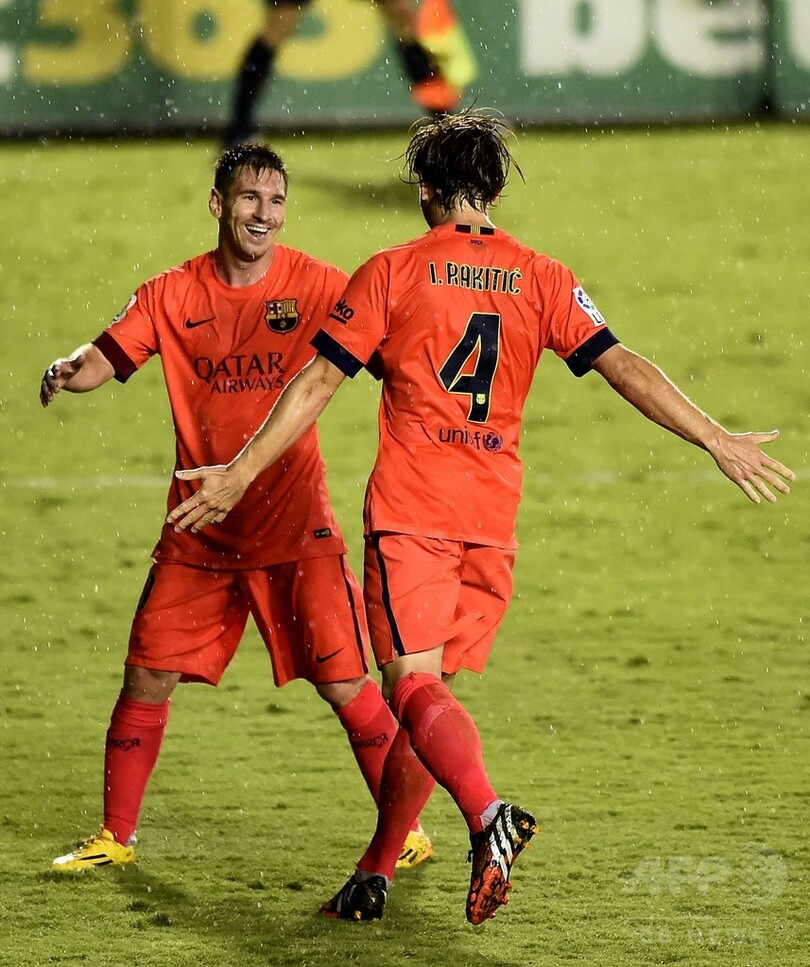 後半にはサンドロ・ラミレス(Sandro Ramirez Castillo)、ペドロ・ロドリゲス・レデスマ(Pedro Rodriguez Ledesma)、メッシがそれぞれ得点を挙げ、大勝を飾ったバルサは無失点で開幕4連勝を飾っている。(c)AFP