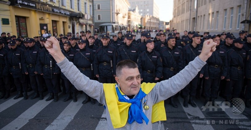 【9月22日 AFP】ロシアの首都モスクワ(Moscow)で21日、ロシアのウクライナ危機介入に抗議するデモ行進が行われた。4月にウクライナで戦闘が勃発して以降、ロシアで行われた初の大規模な反戦デモだ。