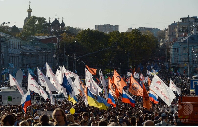 【9月22日 AFP】ロシアの首都モスクワ(Moscow)で21日、ロシアのウクライナ危機介入に抗議するデモ行進が行われた。4月にウクライナで戦闘が勃発して以降、ロシアで行われた初の大規模な反戦デモだ。