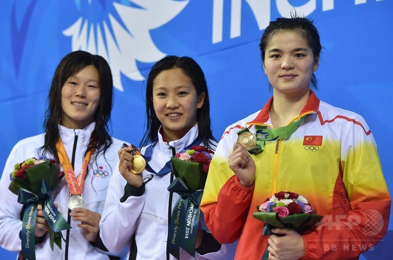 渡部と金藤の日本勢に続き、中国のシ・ジンリン(Shi Jinglin)が2分23秒58で銅メダルを獲得した。(c)AFP