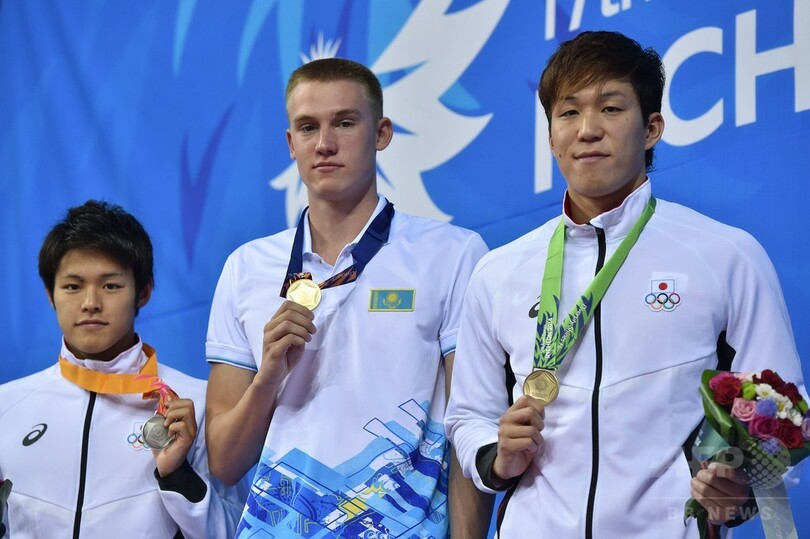 小日向一輝(Kazuki Kohinata)は2分9秒45を記録し銀メダル、小関也朱篤(Yasuhiro Koseki)は2分9秒48で銅メダルだった。(c)AFP