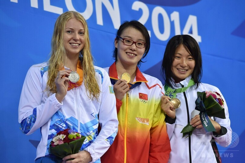 優勝は、27秒66を記録した中国の傅園慧(Fu Yuanhui)、銀メダルには、28秒04でカザフスタンのエカテリーナ・ルデンコ(Yekaterina Rudenko)が輝いた。(c)AFP