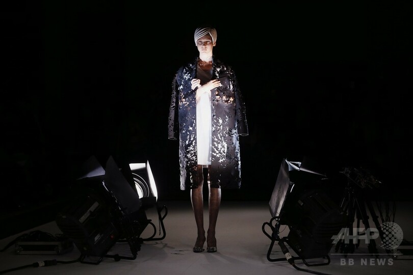 23日には、森永邦彦(Kunihiko Morinaga)がデザイナーを務める「アンリアレイジ(ANREALAGE)」が新作を発表した。(c)AFP