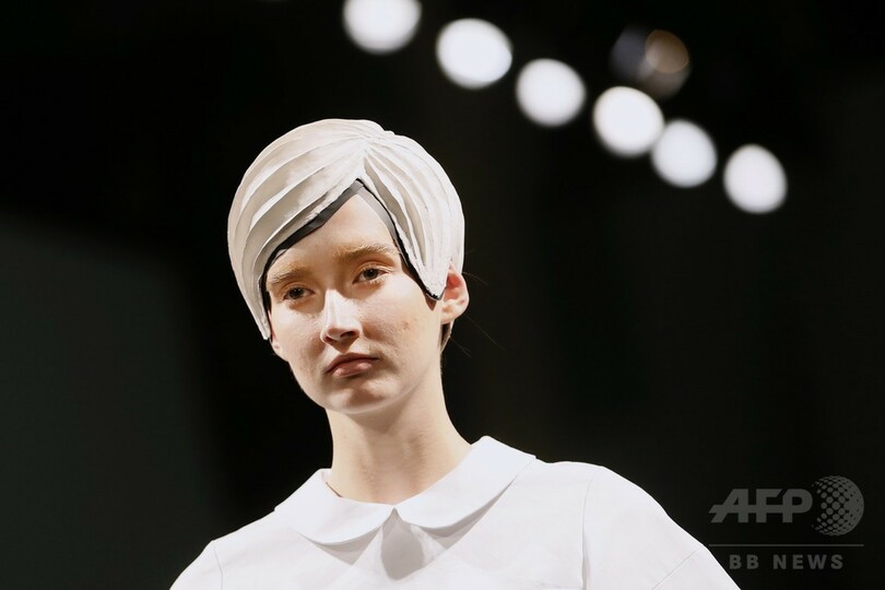 23日には、森永邦彦(Kunihiko Morinaga)がデザイナーを務める「アンリアレイジ(ANREALAGE)」が新作を発表した。(c)AFP