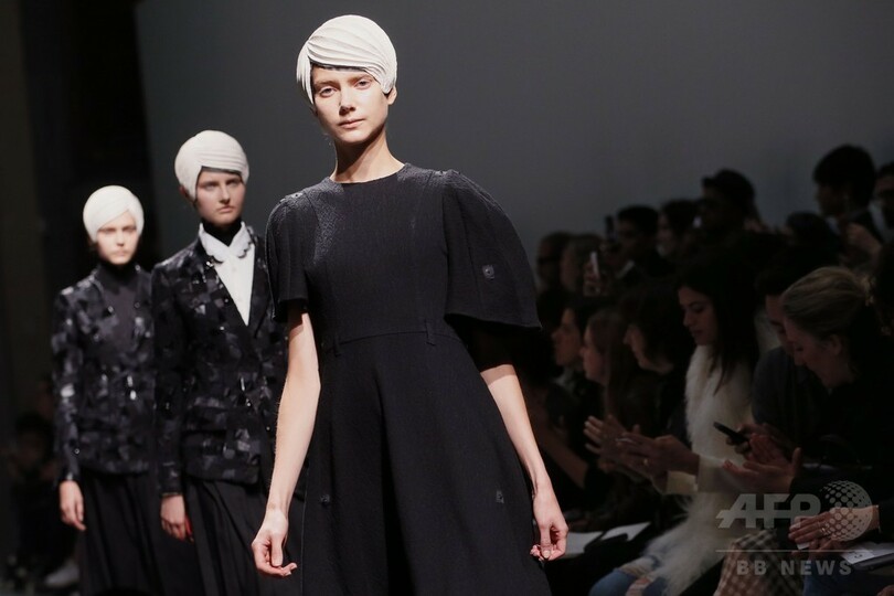 23日には、森永邦彦(Kunihiko Morinaga)がデザイナーを務める「アンリアレイジ(ANREALAGE)」が新作を発表した。(c)AFP