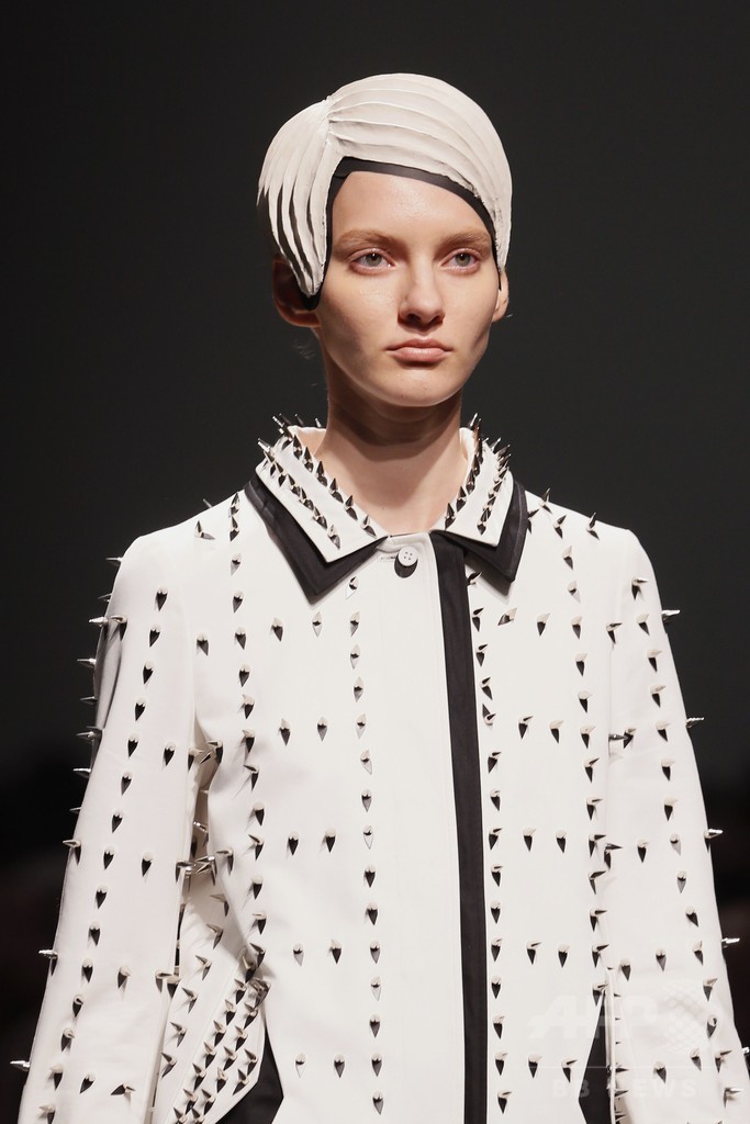 23日には、森永邦彦(Kunihiko Morinaga)がデザイナーを務める「アンリアレイジ(ANREALAGE)」が新作を発表した。(c)AFP